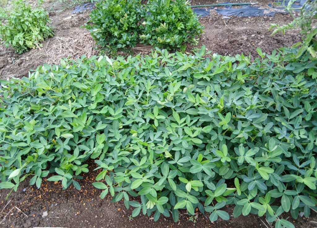 おおまさりの落花生苗3個植えたところ、大雨の後 急に葉が伸び、追加した土の上まで根が延びて茂ってます。11月上旬葉が黄色くなって枯れ出したら収穫時期かな?セロリは株が大きくならずサラダには不向き。