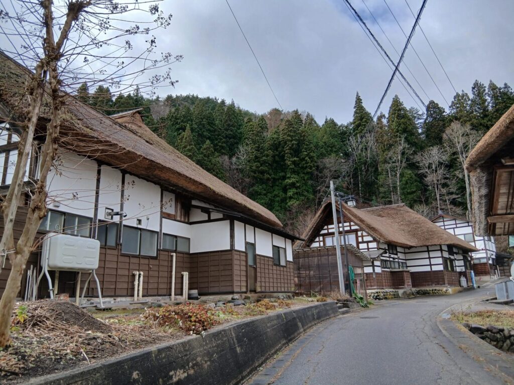 道路から分かり易い前沢曲家集落 紅葉の節は初めて、南会津 田島方面からの眺め 朝日に映えて最高に綺麗!山一面次から次と見事で、途中何度も車止めて写真撮りたかったのですが、まず目的地へ・・・急ぎ、お昼にやっとパチリ!