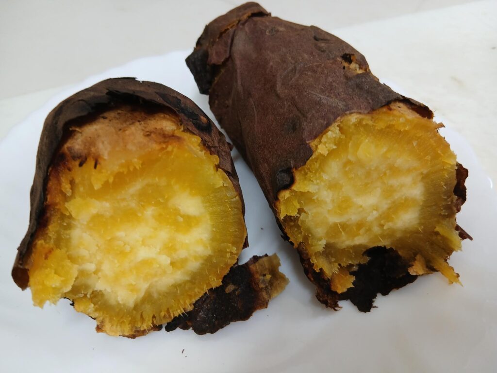 畑で育てたサツマイモ「シルクスイート」、石窯でわざわ焼いて下さり、我が家ではレンジで温めるだけ、ラップせずに温めただけ、とても甘く美味しく頂きました。