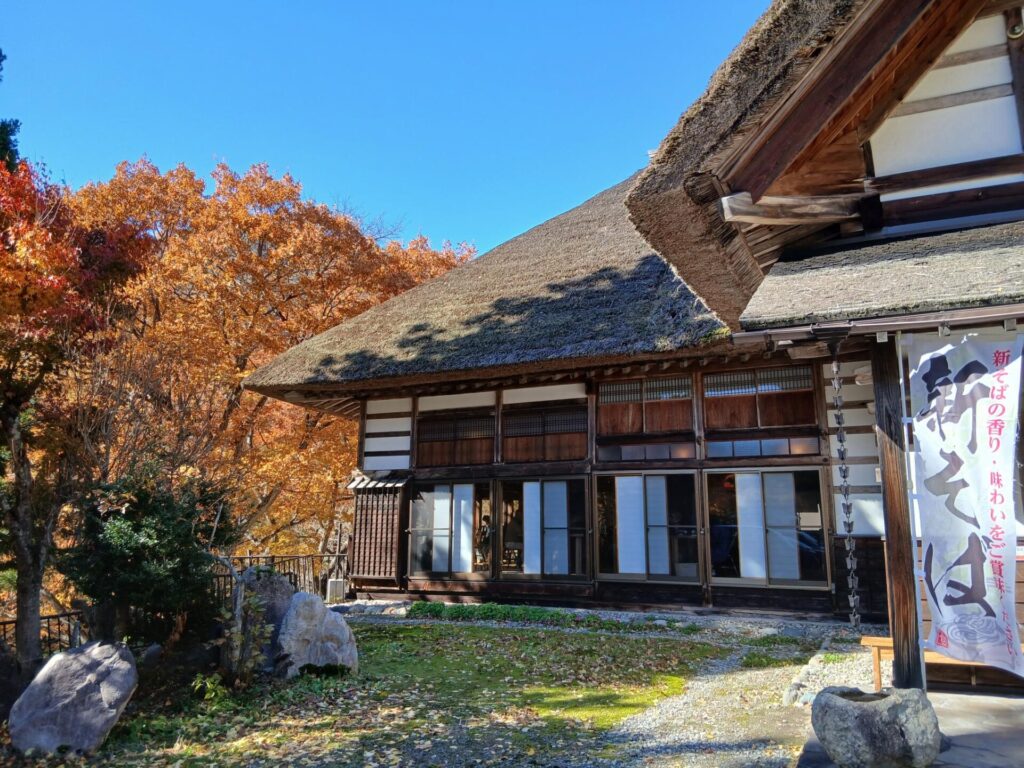 R.7.11.12 舘岩 前沢の紅葉by 大森工房だより投稿日: 2025年11月13日コメントを受け付けていません 曲家バックに、入り口をパチリ! 以前 いとこがこの構図を描いて新潟の県展に出品なさった絵を思い出しました。点描での細かく描かれた作品で年賀状で拝見していつか紅葉の時期に眺めたいと思ってました。 道路から分かり易い前沢曲家集落 紅葉の節は初めて、南会津 田島方面からの眺め 朝日に映えて最高に綺麗!山一面次から次と見事で、途中何度も車止めて写真撮りたかったのですが、まず目的地へ・・・急ぎ、お昼にやっとパチリ! 美味しいお蕎麦、目の前に綺麗な紅葉見ながら頂きました。今月で今年は終わり、来春また始まるそうです。 「はっとう」初めての味美味しかったです。名前の由来 代官様が初めて食し、あまりに美味しいので、お祭り・お祝いの日以外 食べてはならぬというご法度が出されたことからその名がつけられたそうです。 季節にぴったりの書